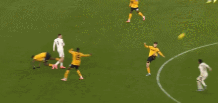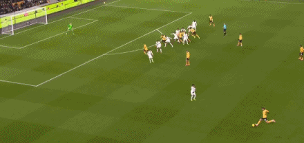 第73分钟,连续空中接力!最后沃尔费凌空劲射入网,狼队2-3切尔西