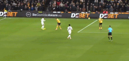 第89分钟,天外飞仙!吉滕斯凌空远射中柱后弹进球门,狼队2-4切尔西