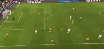 第43分钟,狼队定位球开到禁区,阿罗科达雷前插甩头攻门顶偏